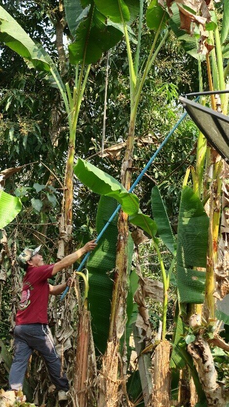 One of the visions the Burnettes brought with them to northern Thailand was the possibility of converting the upland forests into year-round sources of sustenance and income. Where hillsides had previously been cultivated in single crops, such as rows and rows of commercial plantings of rubber trees, the Burnettes introduced diversity and sequencing of planted species. It was more than crop rotation. It was agroforestry—blending principles of agriculture into forests. So, for instance, rows of rubber trees might be intermixed with pineapple plants, papaya trees, fast-growing eucalyptus, slow-growing teak, coconuts, mangoes, etc. If one crop failed due to a glutted market, insect invasion, or drought, all was not lost. There were other fruit-yielding or profit-making plantings to support the families. And the plantings were carefully arranged so that plants which needed the shade of taller trees were mixed together, and plants which produced at different times of year were intermingled.